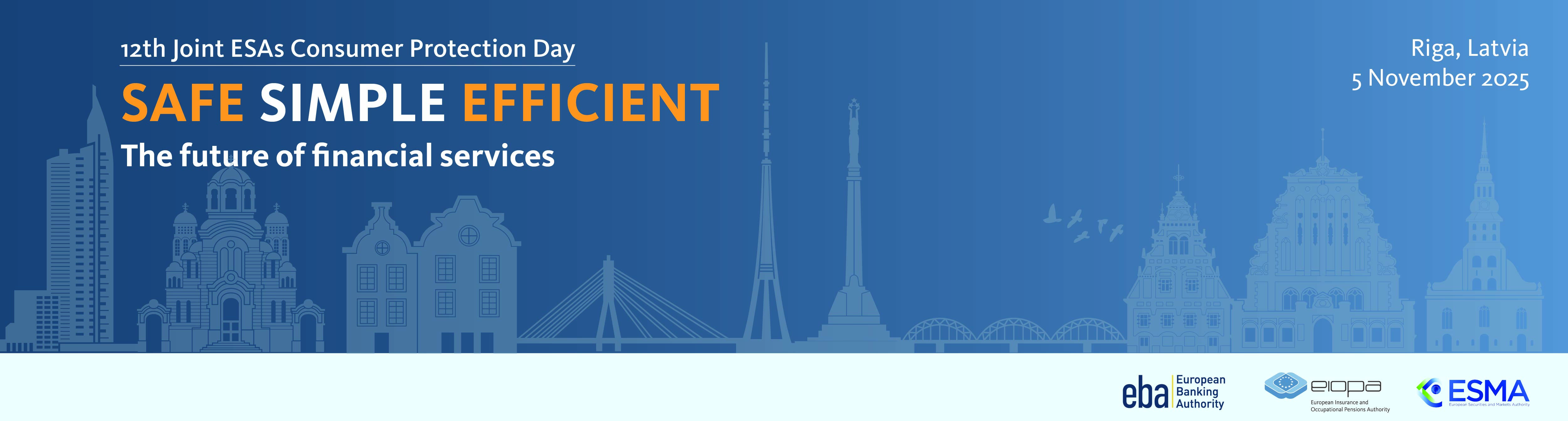 On 5 November 2025 the three European Supervisory Authorities: the European Banking Authority (EBA), the European Insurance and Occupational Pensions Authority (EIOPA) and the European Securities and Markets Authority (ESMA) will hold their 12th Consumer Protection Day. The theme of the event is "Building a framework for more efficient, simpler and safe financial services for consumers".