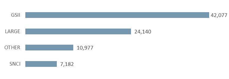 The EBA reporting framework exhibits a wide presence of proportionality, where numerous requirements are linked to institution type, activities, prudential approaches, thresholds. Over 66% of the full range of templates (covering 92,000 modelled/defined data points) have some kind of proportionality feature or simplification measure attached to. SNCIs are subject to reporting of only 45,000 data points (49% of total requirements). The proportionality is also evident in terms of the actual reporting volumes, where SNCIs report only 30% of data points compared to large institutions.