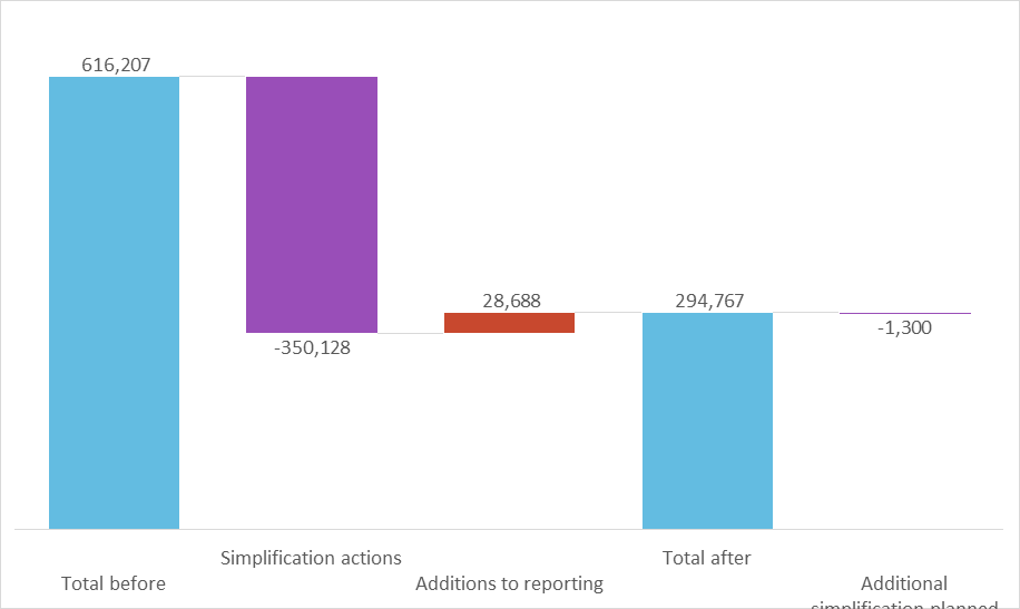 [4] In the absence of data on potential cost impacts that is requested from the respondents to the public consultation, the best proxy for the impact of the simplification initiatives is the count of data points and comparing the count before and after the simplification initiatives.