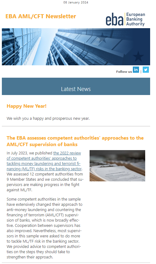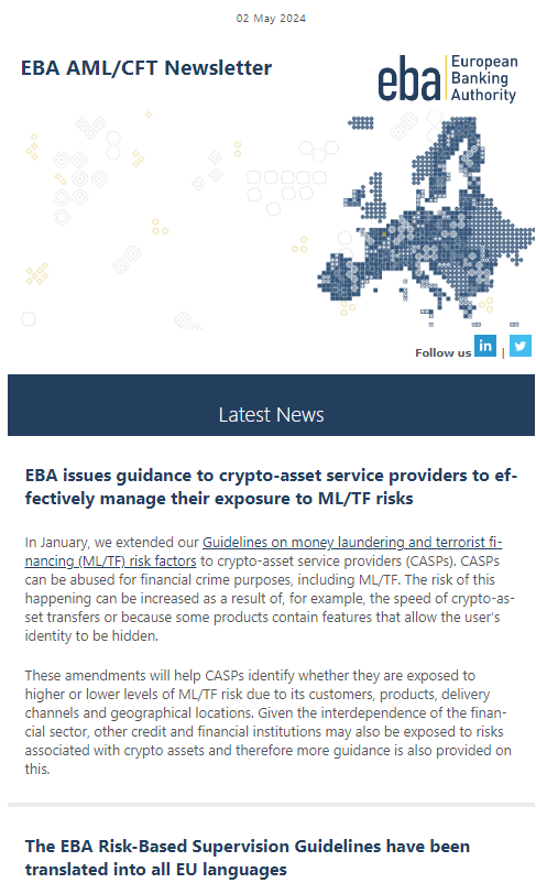 All EBA AML newsletters are available also here.