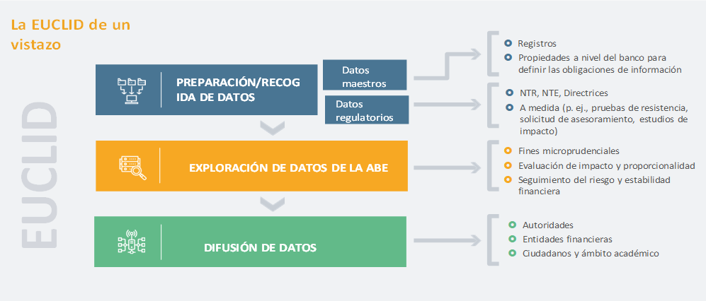 Con la implantación de la Infraestructura Centralizada Europea para Datos de Supervisión (EUCLID), la ABE pudo integrar la mayor parte de sus datos históricos y comenzar a recopilar información sobre la totalidad del sector bancario de la UE. Gracias a EUCLID, las distintas autoridades que se relacionan con la ABE han conseguido más libertad y flexibilidad para gestionar la transmisión de datos a esta. Los datos maestros fluyen de forma constante hacia la ABE, lo que permite atender y actualizar las obligaciones de información de la noche a la mañana y sin fisuras. De este modo, la ABE puede resolver más rápidamente los problemas de información gracias a las observaciones automáticas sobre las transmisiones de datos a través de EUCLID.
