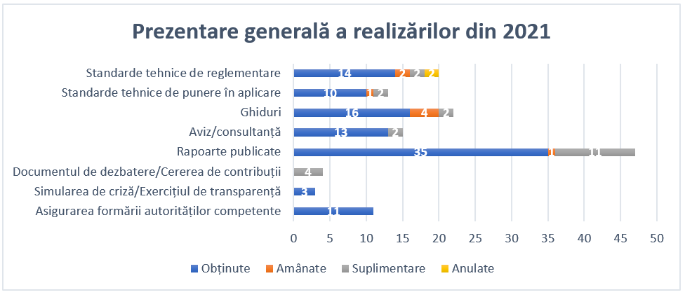 Figura 1: Prezentare generală a principalelor realizări obținute în raport cu programul de lucru al ABE pentru 2021